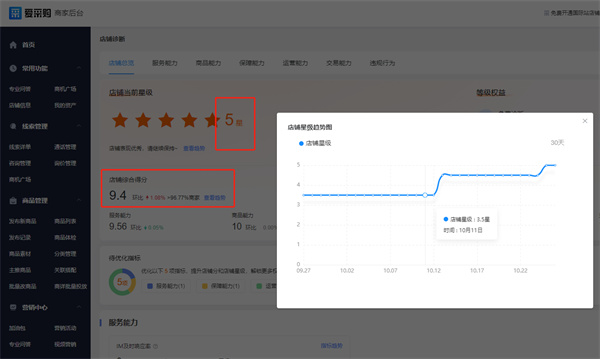 各維度得分:每個維度由1-3個相關的指標項組成,根據商家各項指標在所處主營二級類目的實際情況或商家自身的指標表現,由大數據模型計算出對應的指標得分,每個指標滿分為10分。 指標權重:根據各品類行業情況及平臺自身情況,不同類目下的因子權重側重點不同,并且根據各品類的發展情況,不同時期下,不同類目的權重配比也會有相應的調整。 保護分說明:若由于數據不足,導致某項指標無得分的情況時,該指標權重會根據模型算法自動分配至其他指標下。若出現權重配比公式與實際權重配比有差異的情況,以實際模型計算出的店鋪綜合得分為準。 虛假數據處理:虛假數據均會在計算時予以剔除,并將根據情節嚴重程度,對存在以不正當方式獲取虛假評分、訂單量及成交金額等行為的店鋪在店鋪綜合得分與店鋪星級評定過程中進行相應的減分處理。